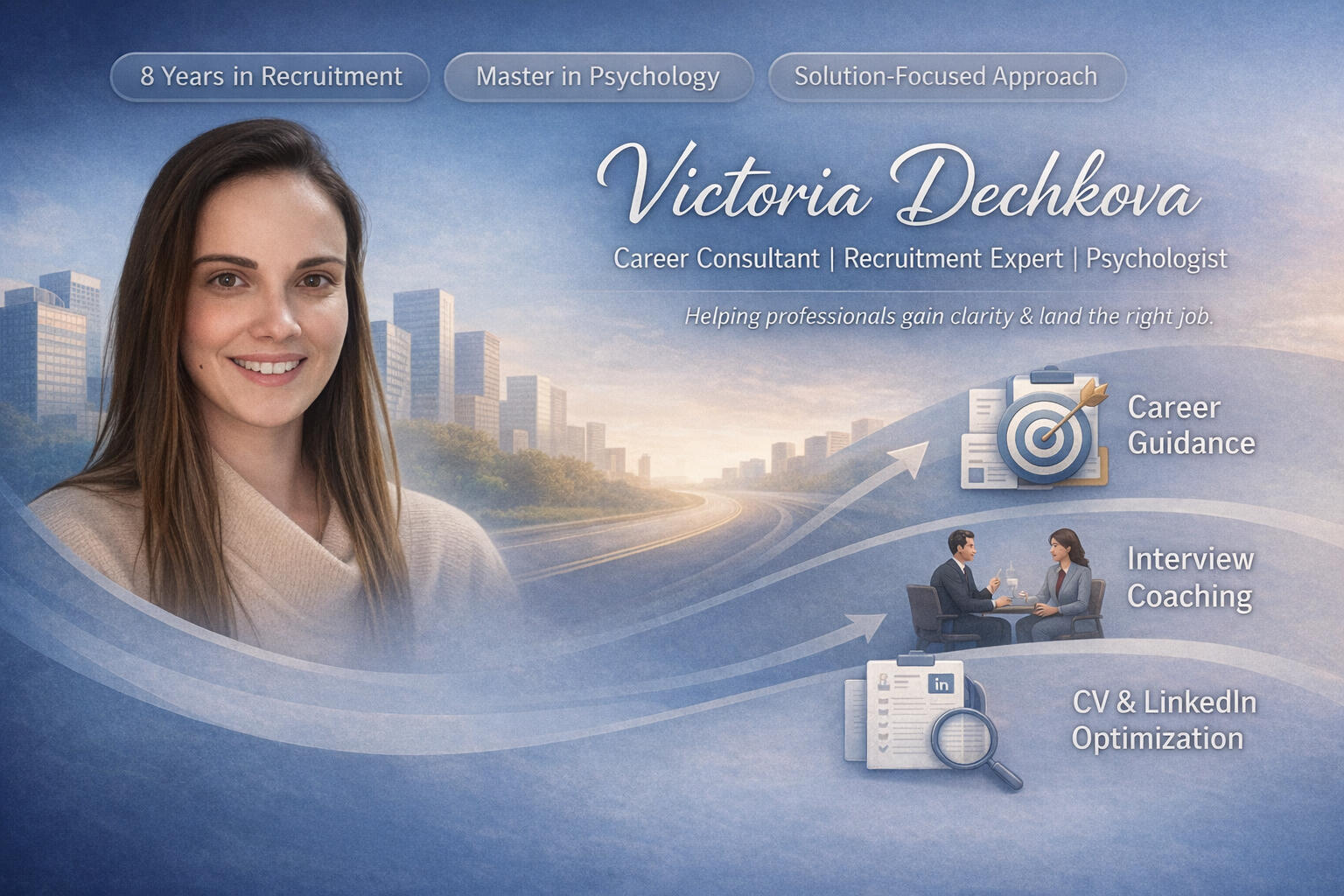 For over 8 years, I worked as a recruiter — sourcing, screening, and selecting candidates across industries. I sat in the room where hiring decisions were made. I know what makes a hiring manager say yes, and I know the small, fixable things that make them say no.I also hold a Master's degree in Psychology, which means I don't just help you polish your CV — I help you show up with confidence, manage interview nerves, and present the best version of yourself under pressure.My approach is solution-focused and practical. No vague advice. No generic templates. Just honest, targeted guidance from someone who has been on both sides of the hiring process.
